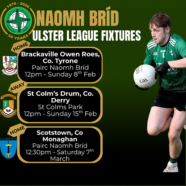 Our seniors are in ulster league action today (Saturday) when they take on Scotstown in round 4 at Pairc Naomh Bríd with a 12:30pm throw in