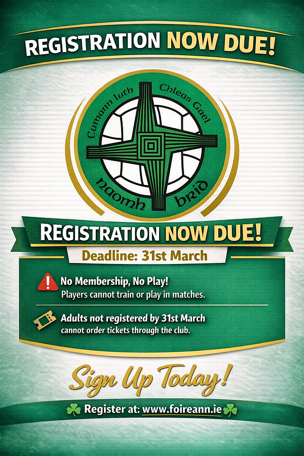 Registration can be completed on www.foireann.ie